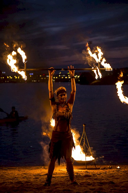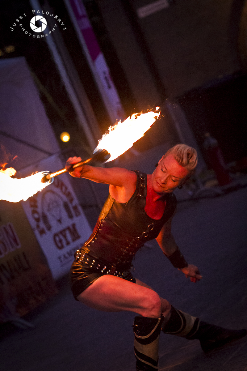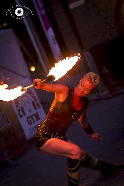 Fire Ladys over 20 years performing career with fire, guarantees for audience pleasant experience. Versatility with fire equipments: staffs, dragonstaff, poi, hoop, clubs, jumping rope and fans , makes it possible to customize shows in very wide variations. Fire Lady also designes and customes her own showclothing so all new ideas are also wellcome.