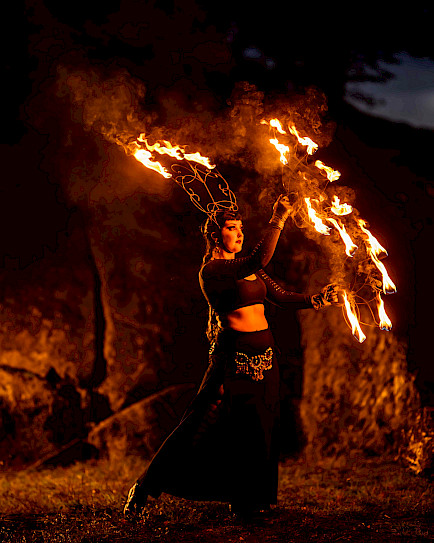 Tulishow on kaunis ohjelmanumero ja upea huipennus tapahtumaan kuin tapahtumaan. Yhdessä tanssin kanssa tulen elementti tuo tilaisuuteesi ripauksen mystiikkaa. Tulishow sopii ulkotiloihin, kaikenikäisille katsojille ja monenlaisiin tilaisuuksiin, kuten yritysjuhliin, häihin, yleisö- ja sesonkitapahtumiin.