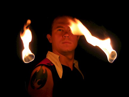 Vallaton yhdistelmä vauhtia, näyttäviä temppuja ja riehakasta huumoria. Esityksessä toinen toistaan huikeammat temput, näyttävä tulenkäsittely ja iloinen huumori saavat yleisön rentoutumaan ja nauttimaan täysin rinnoin taitavasta esityksestä. Esitys päättyy näyttävään ja vaaralliseen tulenpuhallukseen, joka saa yleisön haukkomaan henkeään.